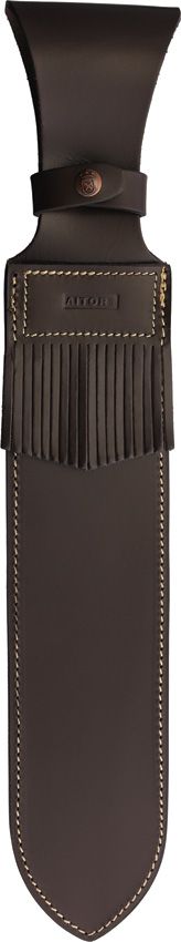 19.5" (49.53cm) overall. 13.75" (34.93cm) satin finish stainless blade. Brown wood handle. Full, extended tang. Lanyard hole. Brown leather belt sheath.