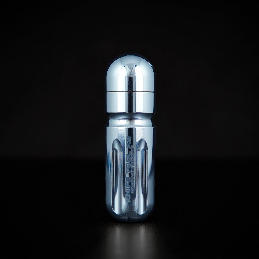 Introducing the Knife Tool XS - Titanium Edition with a hand-polished finish. Precision-machined from solid titanium, this compact multitool embodies craftsmanship at its finest. The mirror-like surface reflects light beautifully, emphasizing the clean lines and flawless geometry of the design. Lightweight, strong, and corrosion-resistant, it’s a perfect balance of performance and elegance - built for everyday use yet finished like a collector’s piece.