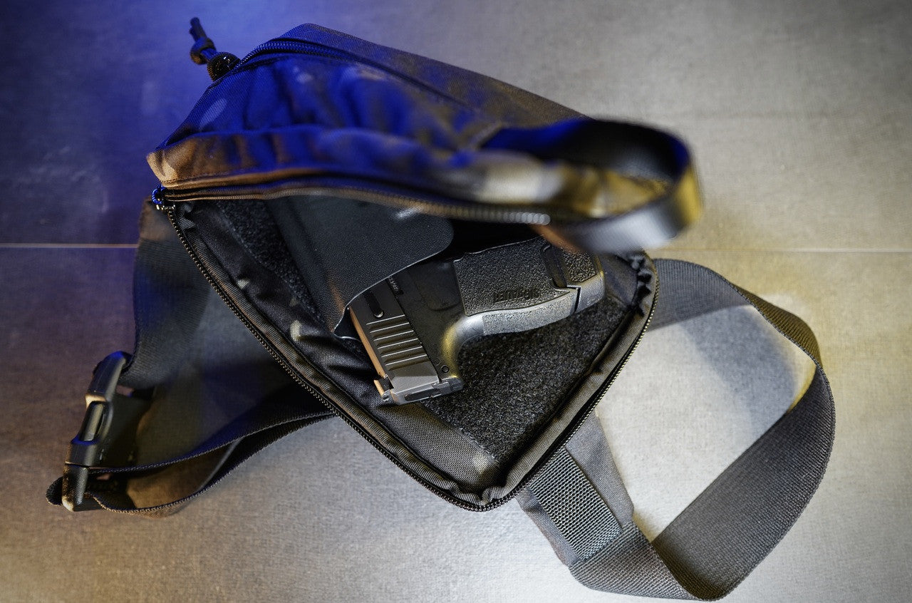 Example of G Size fits with the pocket deployment concept : G19 with accessory, G17 Without accessory, SIG Micro X G17 - Bigger G will not fits in this bag.