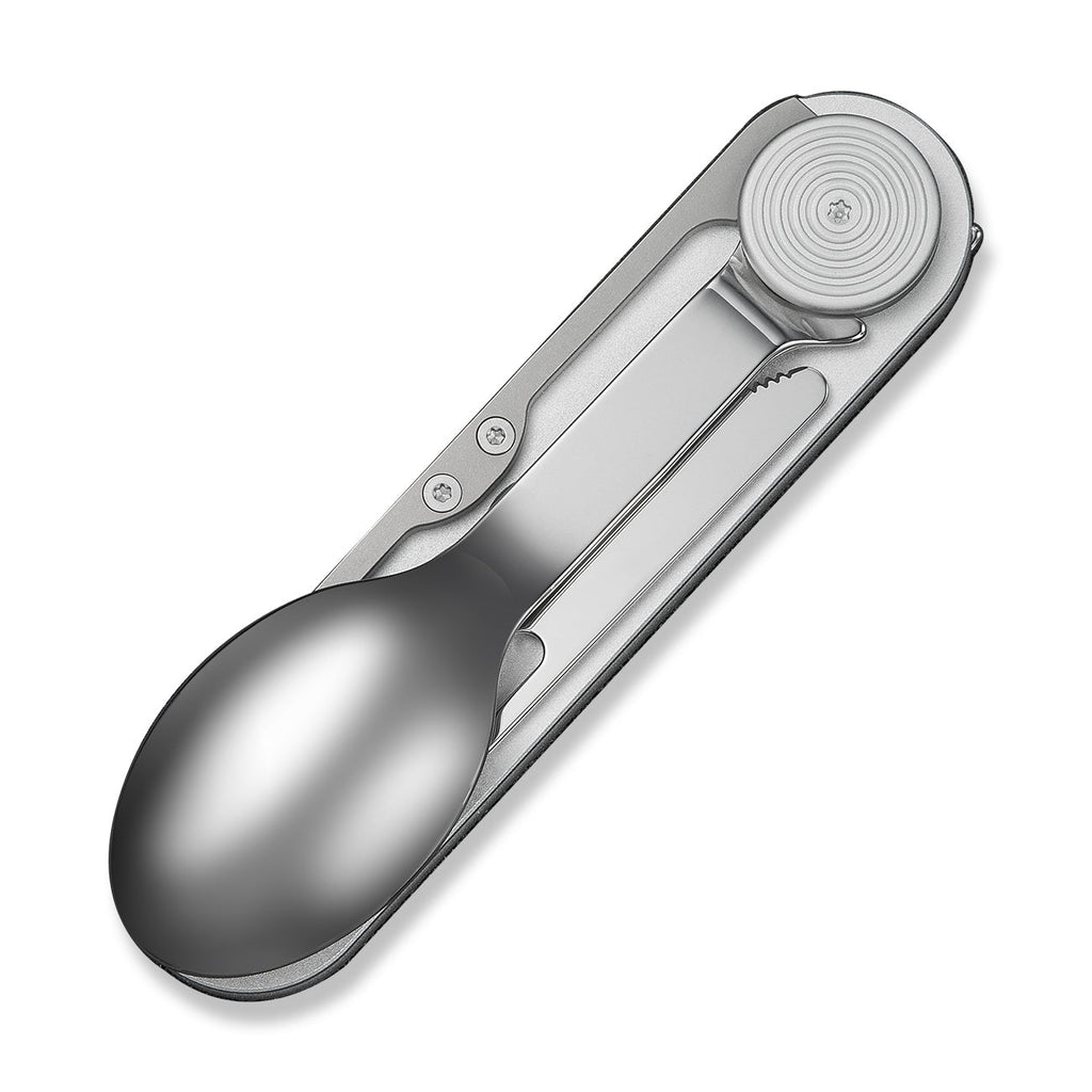 CIVIVI Partake 4-In-1 Multi-Tool Silver Aluminum Handle Stainless Steel Knife, Fork, Spoon & Can Opener C24032C-3, With A Waxed Canvas Pouch