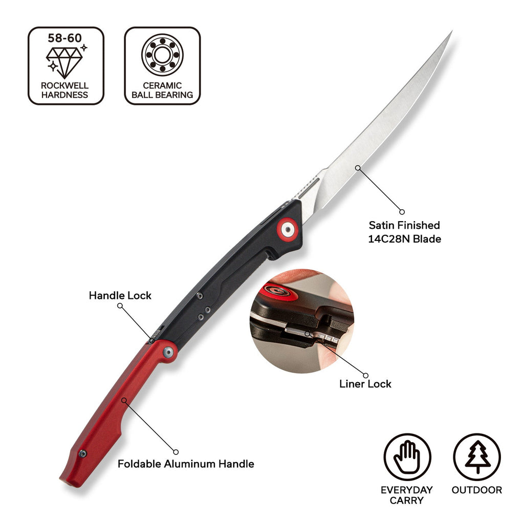 CIVIVI Shawka Folding Fillet Knife Aluminum Handle (5.81" 14C28N Blade) C22029B-1, With 1PC Black Nylon Sheath