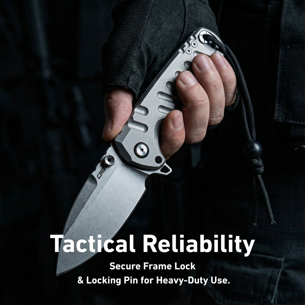 CJRB Tundra Flipper &Thumb Stud & Locking Pin & Frame Lock Tatical Knife Titanium Handle (3.78'' Stone Wash CPM S35VN Blade) J1966G-GY (Limited Edition)