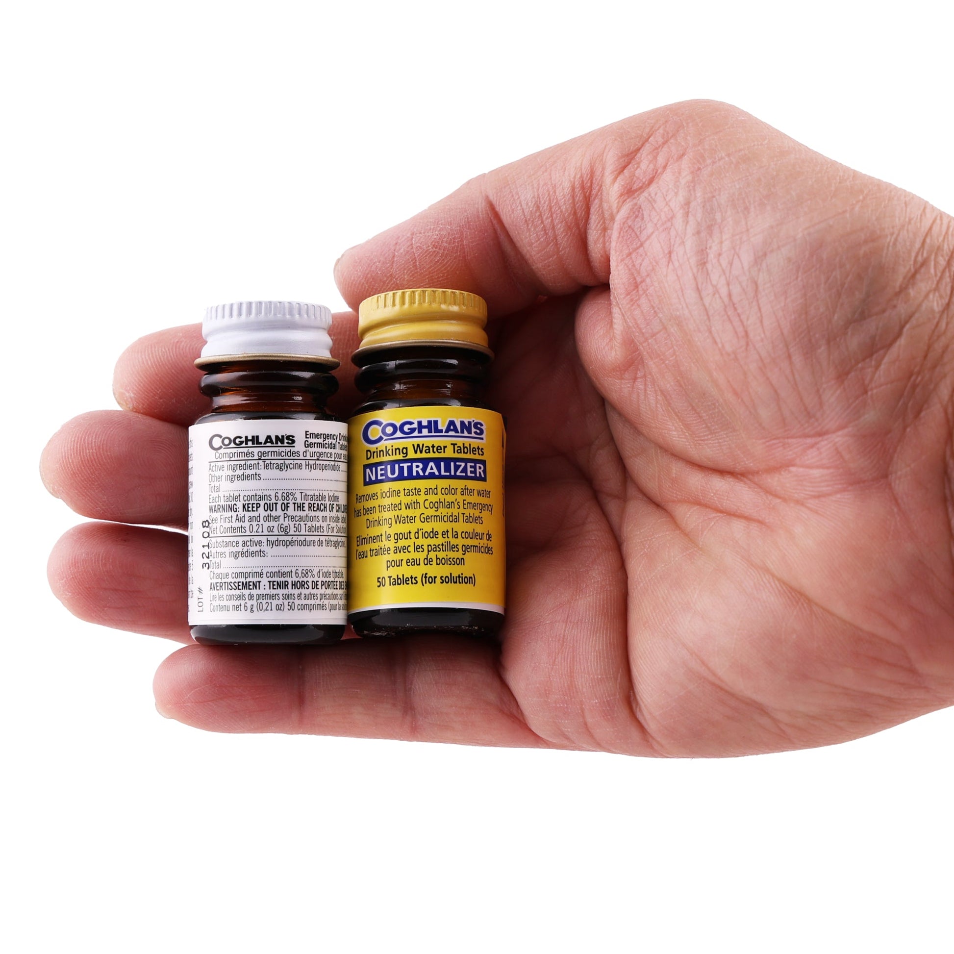Coghlan's Two-Step Drinking Water Treatment is a reliable solution for backpackers and hikers who need access to safe drinking water in the outdoors. With 50 tablets per bottle, it can eliminate bacteria like Giardia from questionable water, and its neutralizer tablets remove the iodine taste from the first step of the treatment. It's a useful backup option when your primary water purification method fails, providing peace of mind on your outdoor excursions. Each treatment disinfects 1 quart of water, making it a practical and compact tool for any outdoor enthusiast.