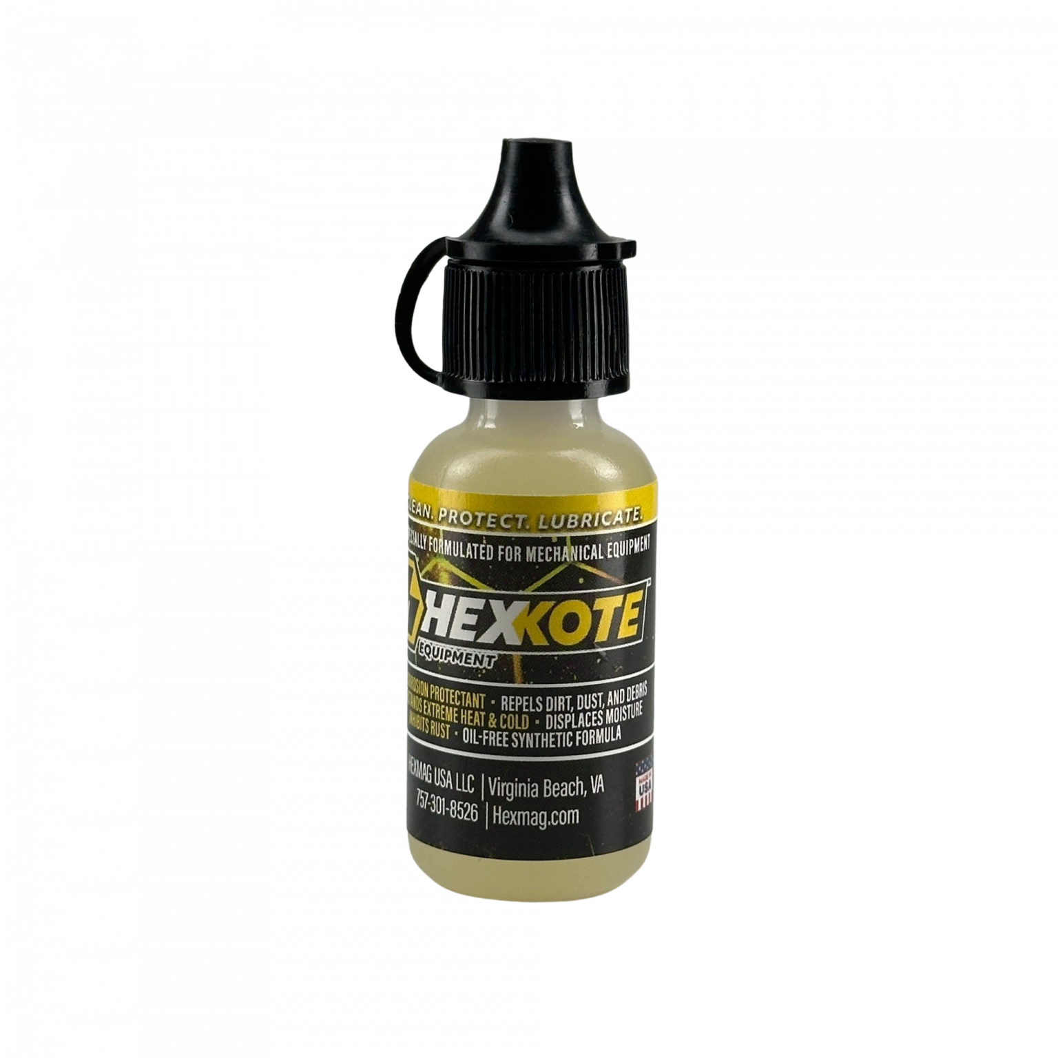 The HEXKOTE Equipment Series is specially formulated to protect and lubricate mechanical assemblies, tools, and up to industrial level equipment. The 0.5 oz Bottle Dropper is ideal for more precise application.
