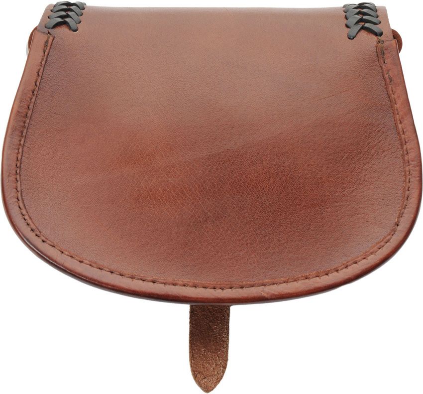 Dimensions: 8.5" x 6.5". Overall strap length: 56". Leather cross strap serves as lock. Black leather accents. Leather construction. Color: Brown.