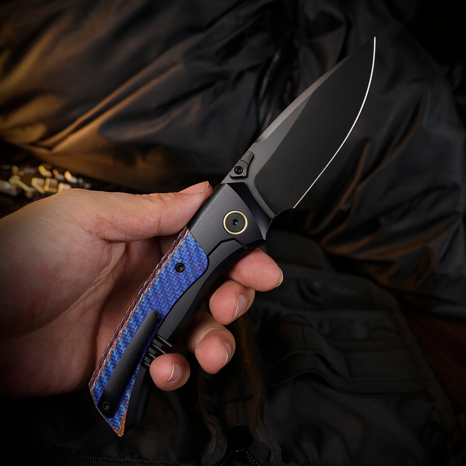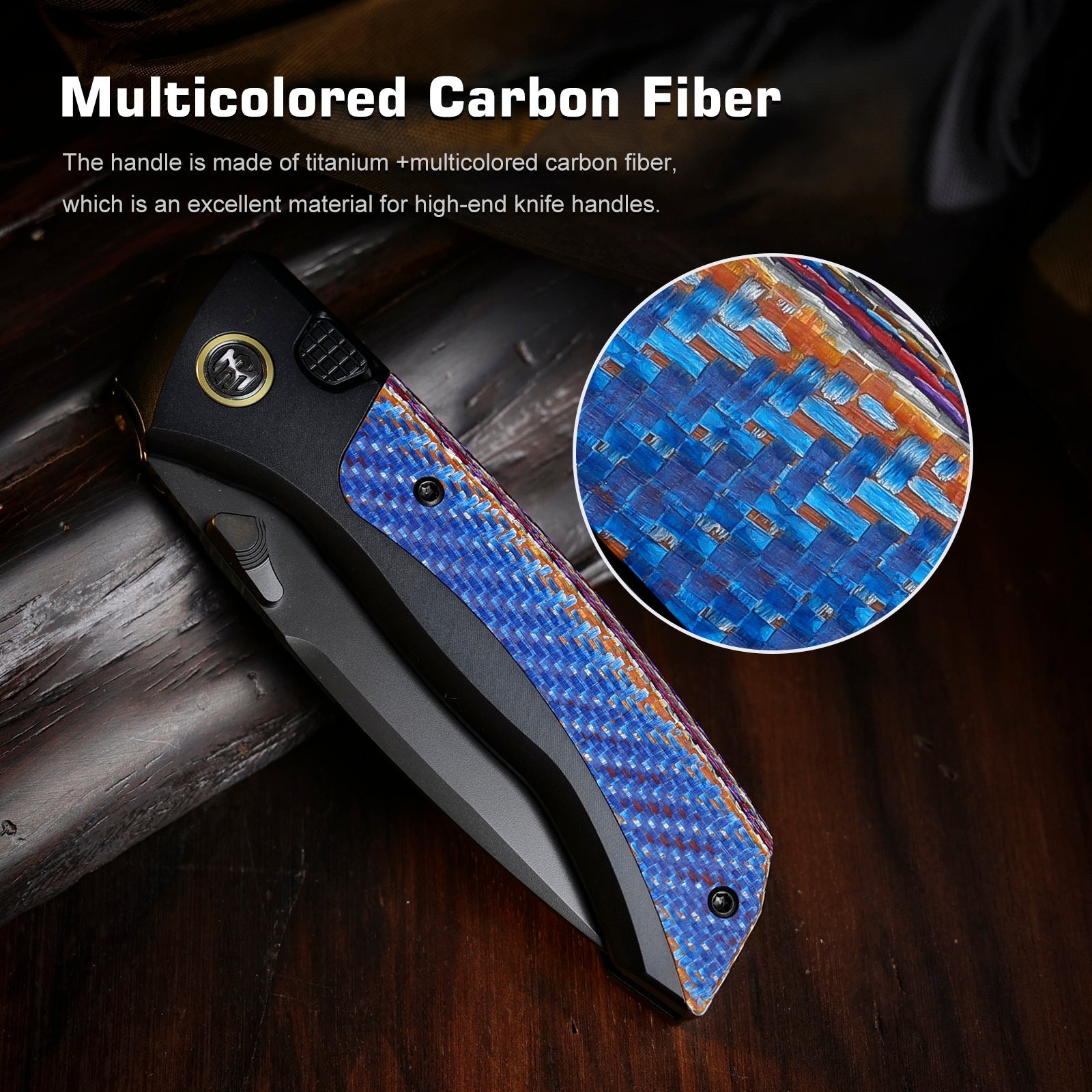 REMETTE RT-Steed Folding Pocket Knife Innovative Button Frame Lock Structure Design M390 DLC Blade Titanium + Carbon Fiber Handle Knives RTWS-BC