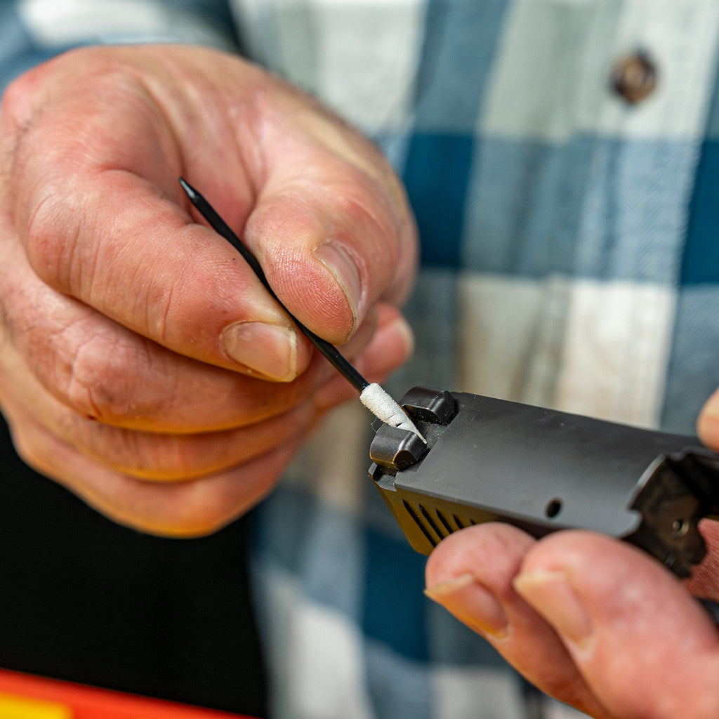 Clean hard to reach areas with the included steel pick and pointed foam swabs (quantity 20)