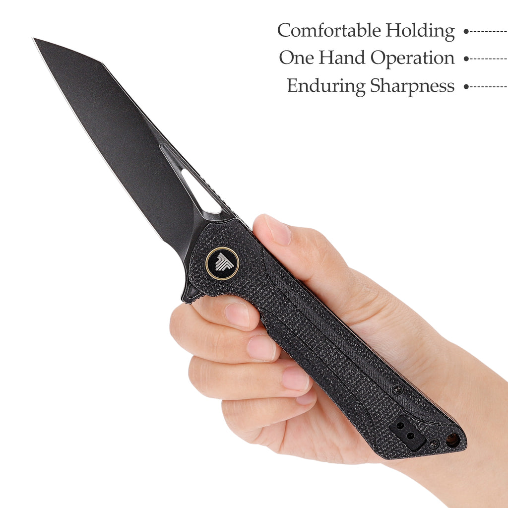 TRIVISA Monoceros-04B Liner Lock Pocket Folding Knfe,3.38" 14C28N Steel Blade,Micarta Handle