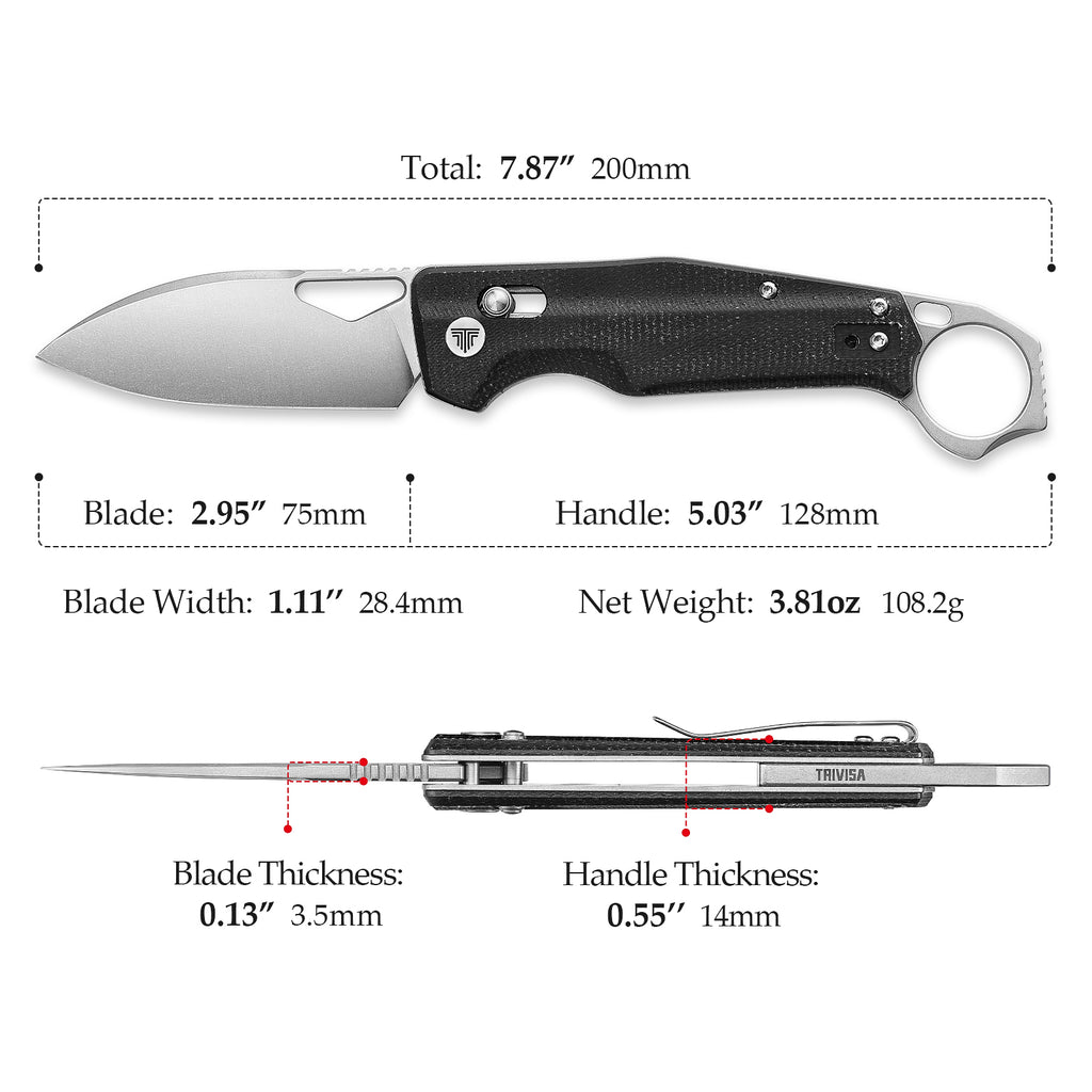 TRIVISA Sagitta-04B,Axis Lock Folding Pocket Knife,2.95" 14C28N Steel,Black Micarta Handle