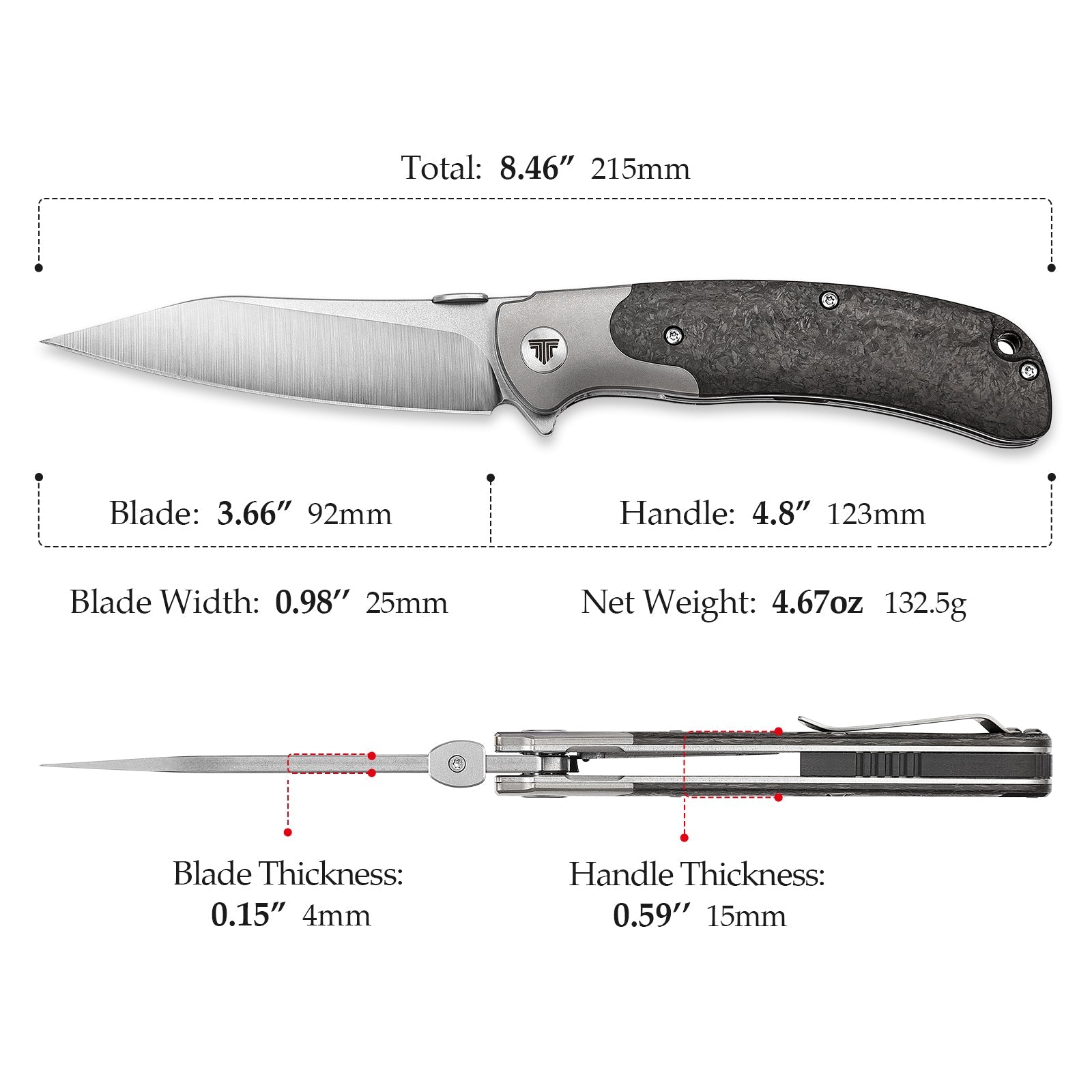 Handle Material:Titanium bolster and carbon fiber scales