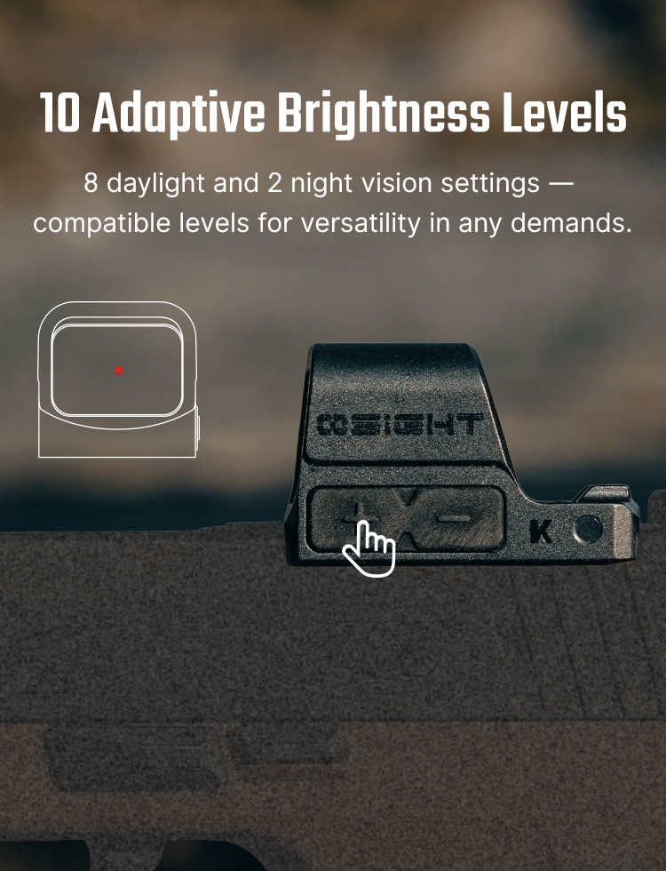 Side-Loading Battery: Effortless battery replacement without removing the optic ensures hassle-free re-zeroing. A high-end CR1620 battery offers easy accessibility while maintaining steady performance.
