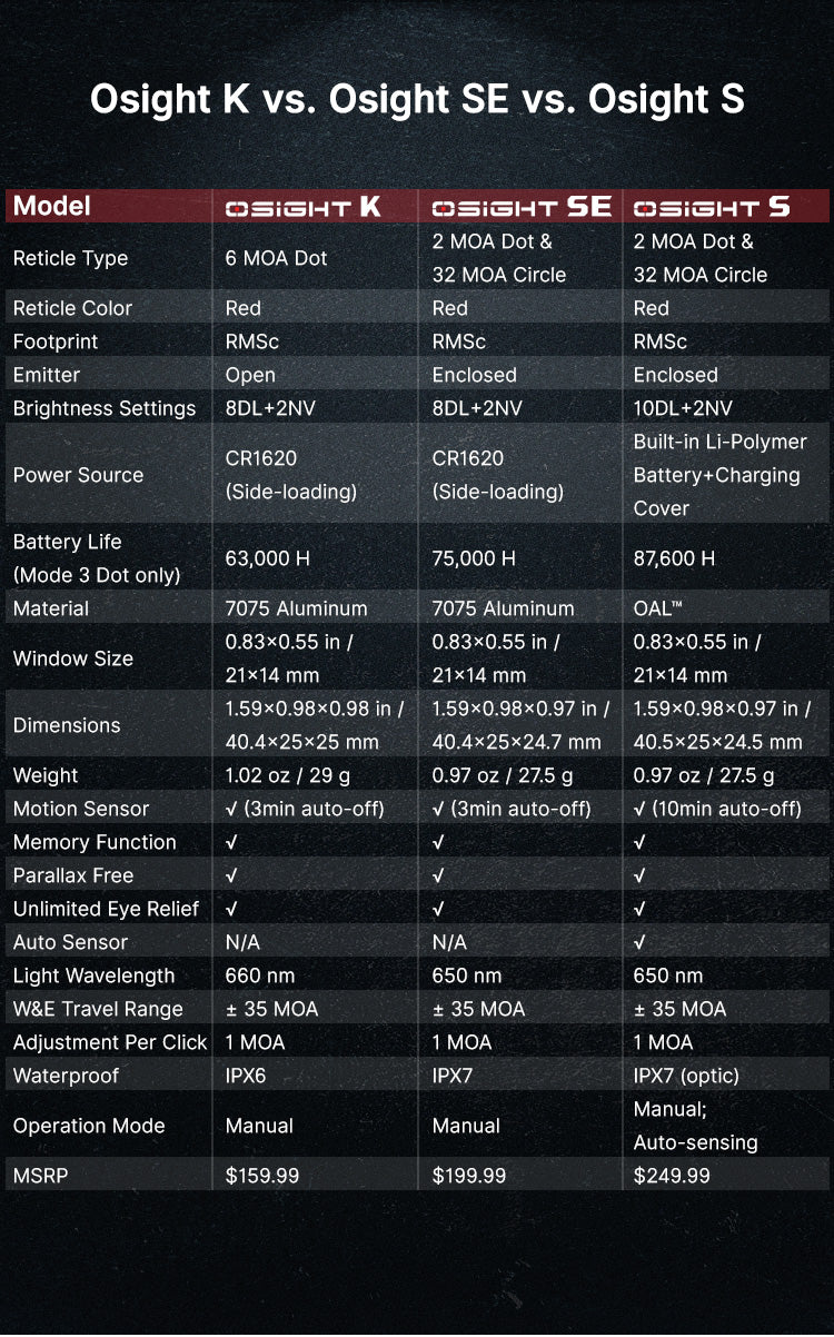 OLIGHT Osight K Open Reflex Optic with Replaceable Side-Loading Battery