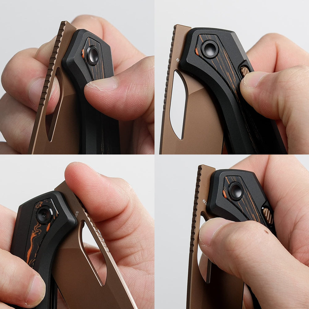 The Kroc features a long, eye-shaped thumbhole designed for smooth, ambidextrous one-handed opening. Its special shape ensures you can deploy the blade easily—no finger pinching or snagging.
